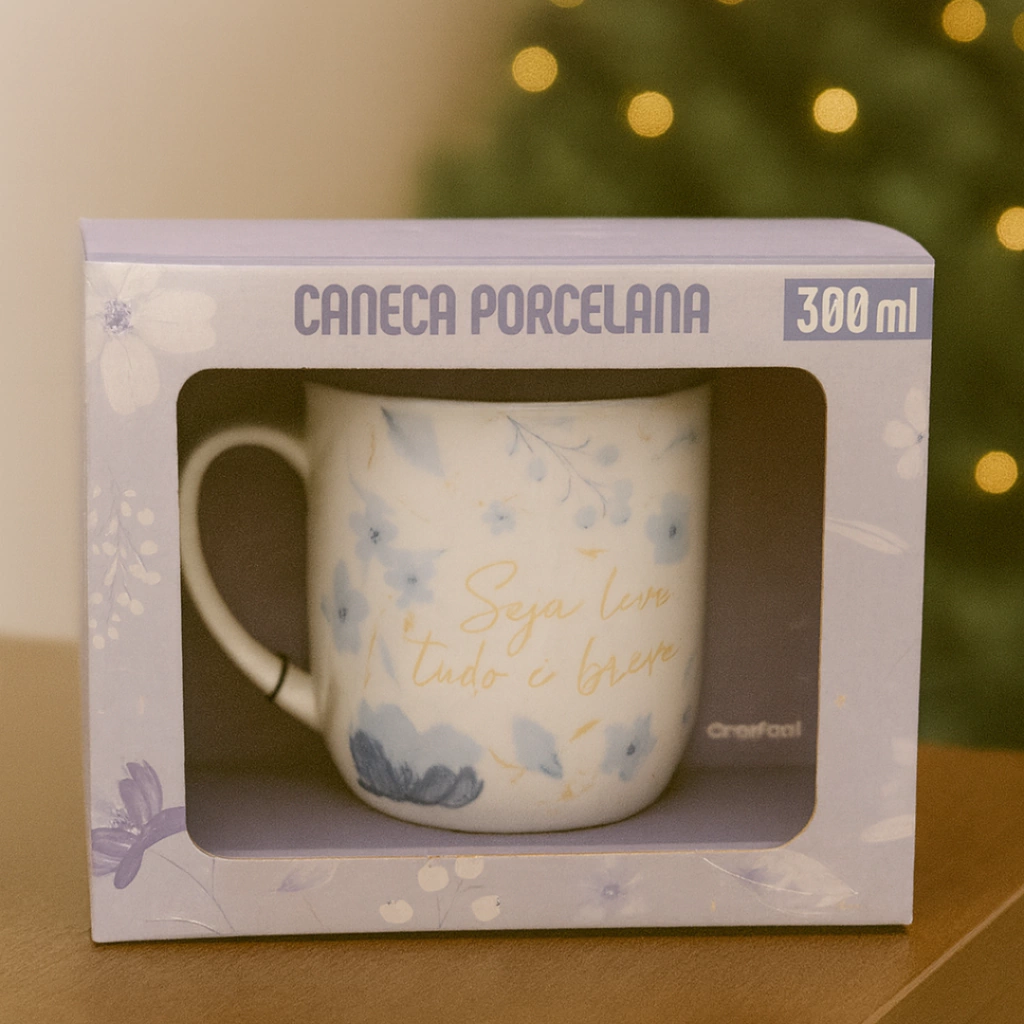Caneca de porcelana 300 ml com frase “Seja leve, tudo é breve” ?